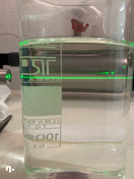 Αν και στο δείγμα αναφοράς παρατηρείται ελάχιστα η δέσμη, ωστόσο είναι φανερή η διαφορά της με την ένταση της στις φωτογραφίες των δειγμάτων που περιέχουν φυσαλίδες. Επίσης, αξίζει να σημειωθεί πως μέσα σε μία εβδομάδα η δέσμη στο δείγμα αναφοράς δεν διακρίνεται σχεδόν καθόλου, γεγονός που υποδεικνύει πως η δέσμη παρατηρείται τις πρώτες μέρες εξαιτίας μικρο-σωματιδίων στο ποτήρι ζέσεως, τα οποία γρήγορα καθιζάνουν.